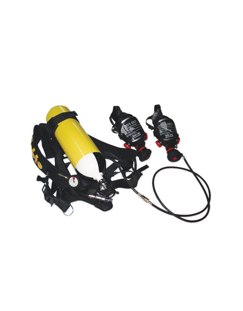 Κατασκευασμένη κατά ΕΛΟΤ ΕΝ‐137, με διάταξη για δεύτερη παροχή (εφεδρικός αεροπνεύμονας, προσωπίδα και σωλήνας ελάχιστου μήκους 2 m)