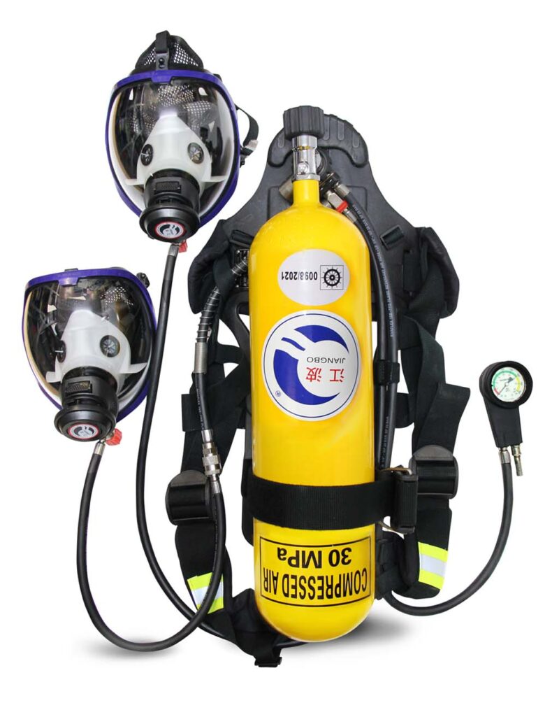 Κατασκευασμένη κατά ΕΛΟΤ ΕΝ‐137, με διάταξη για δεύτερη παροχή (εφεδρικός αεροπνεύμονας, προσωπίδα και σωλήνας ελάχιστου μήκους 2 m)
